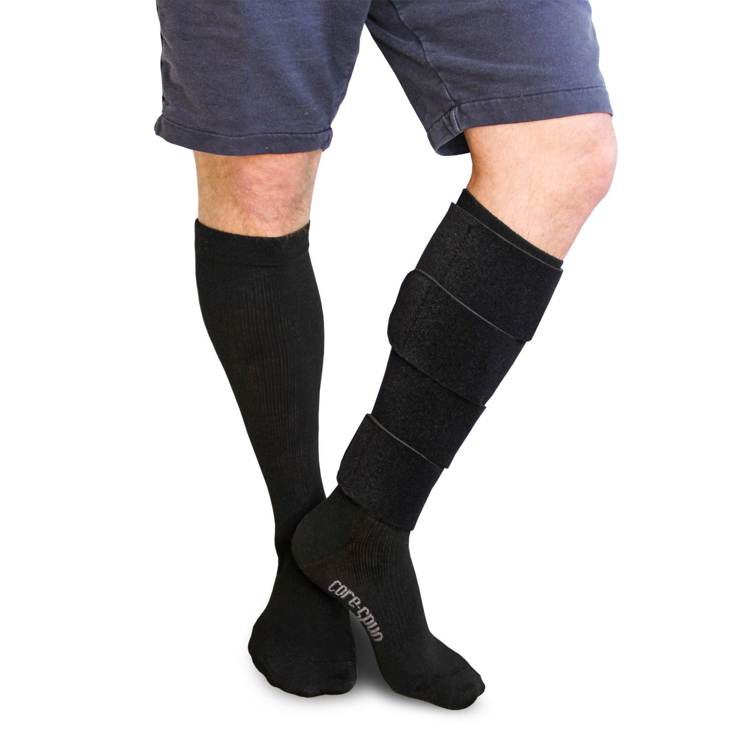 A pair of 10-15mmHg Core-Spun by Therafirm® liner socks is included to add more comfort to feet and legs - Washing Instruction :Hand wash in lukewarm or cold water with mild detergent. Lay flat to dry.